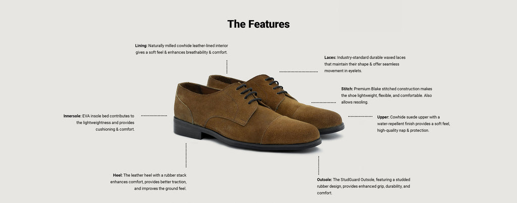 Attorney Derby Brown Suede Leather Shoes - StudGuard