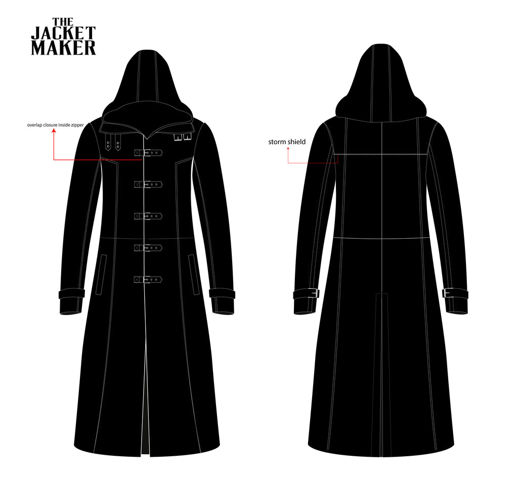 • Huntsman Black Hooded Leather Trench Coat with the following changes: