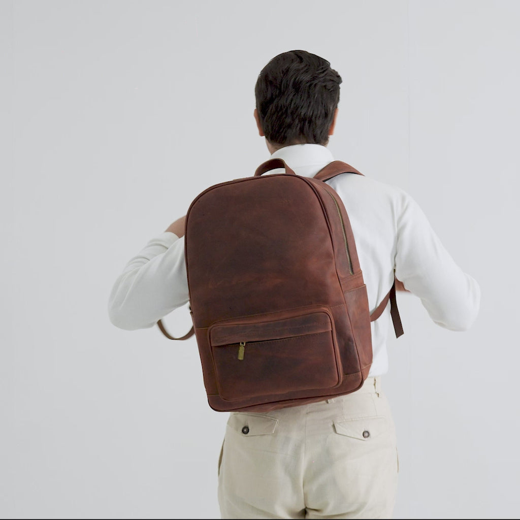 The Philos Vintage Distressed Brown Leather Backpack